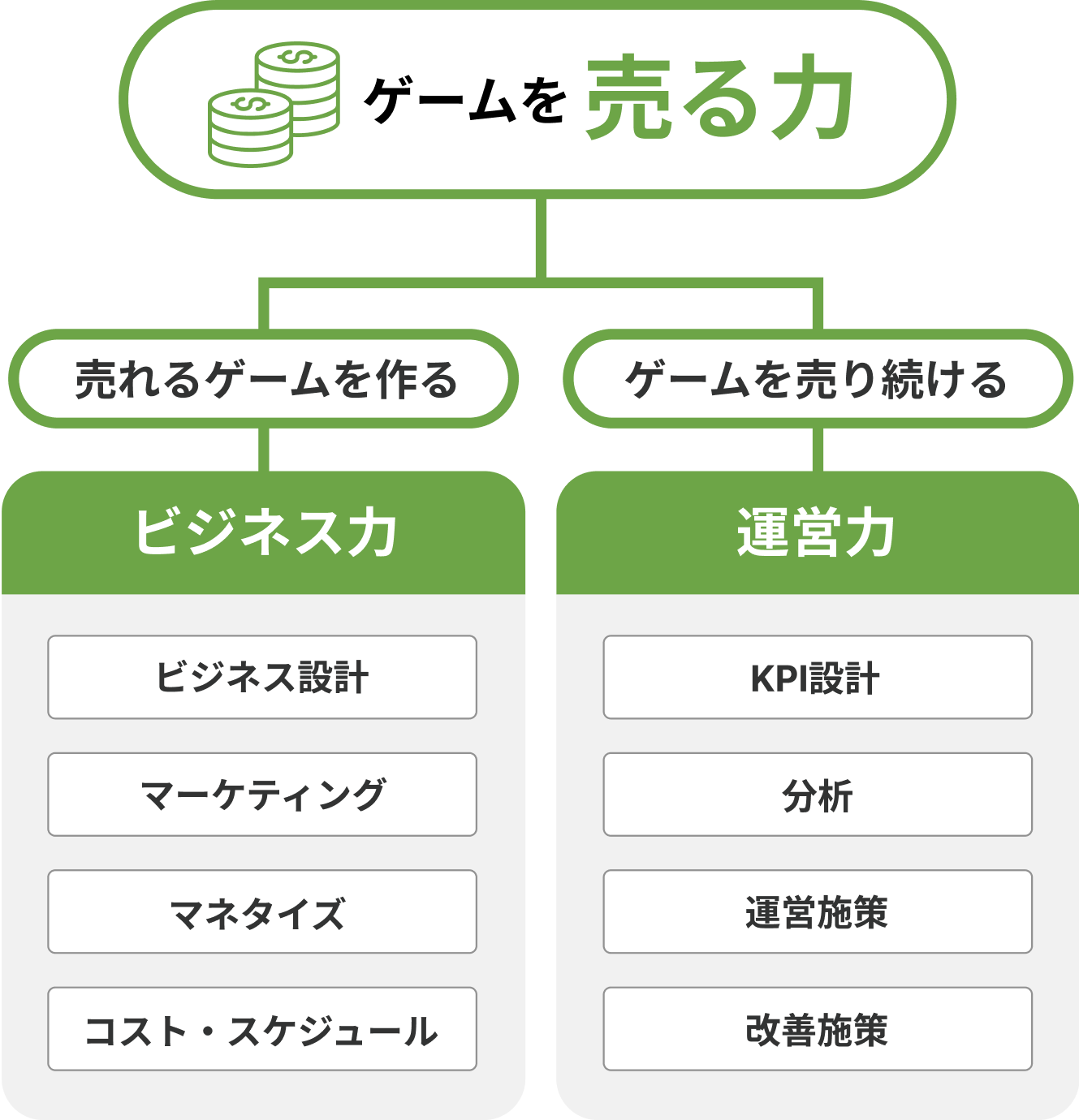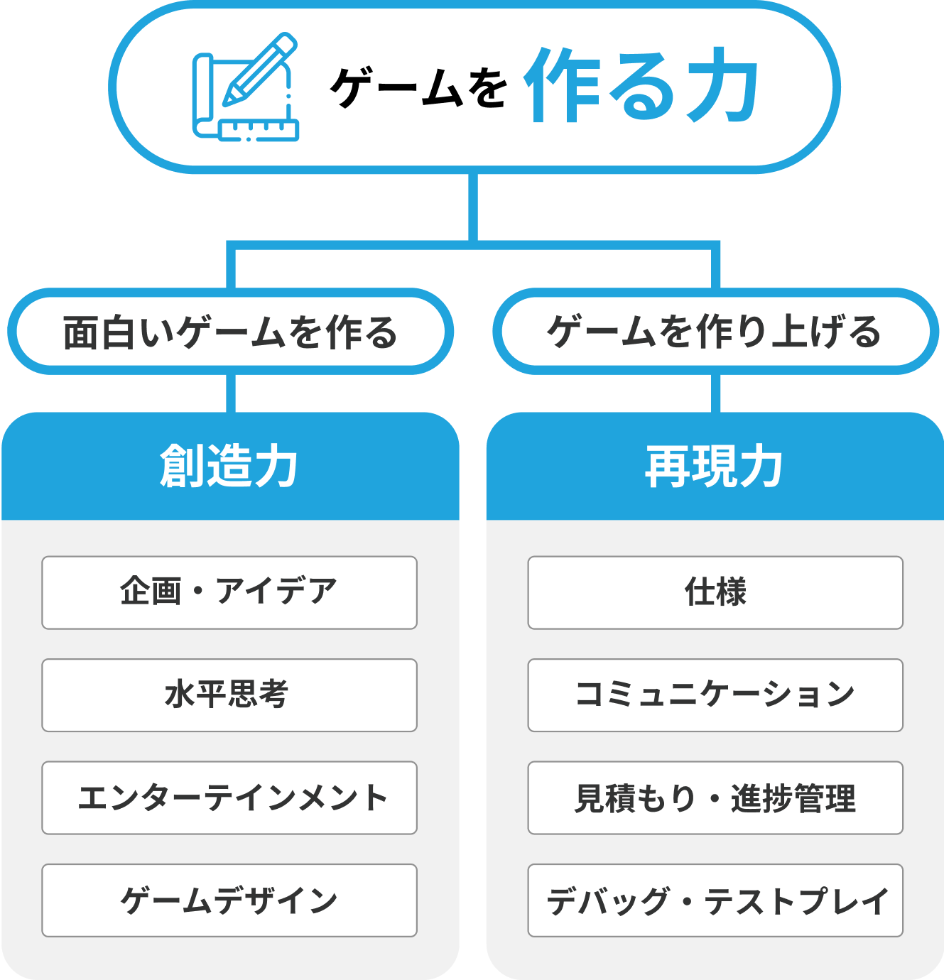 ゲームプランニングとゲームビジネスで不可欠な能力である、『面白いゲームを作る力』『売れるゲームの設計力』を育てます。